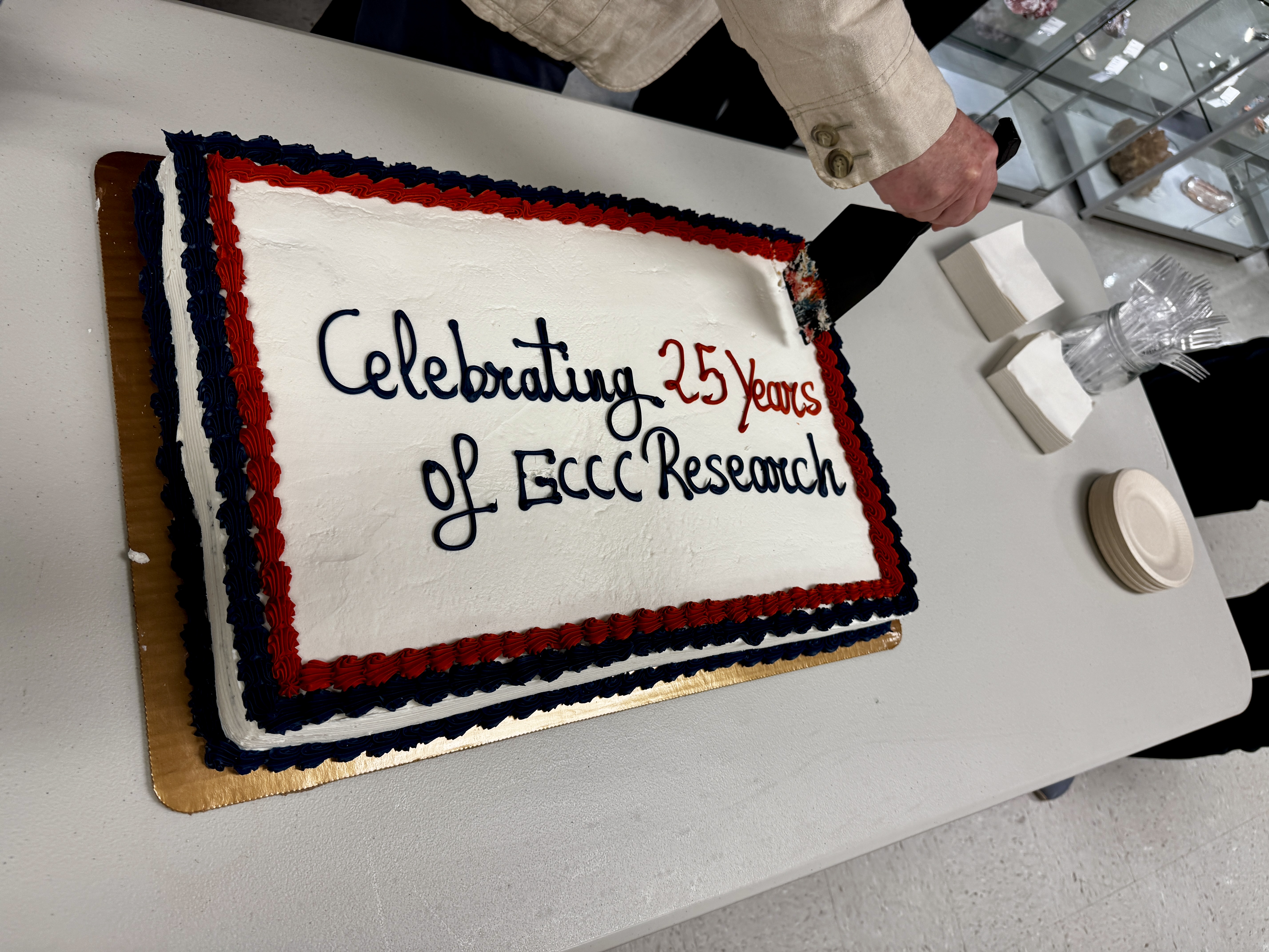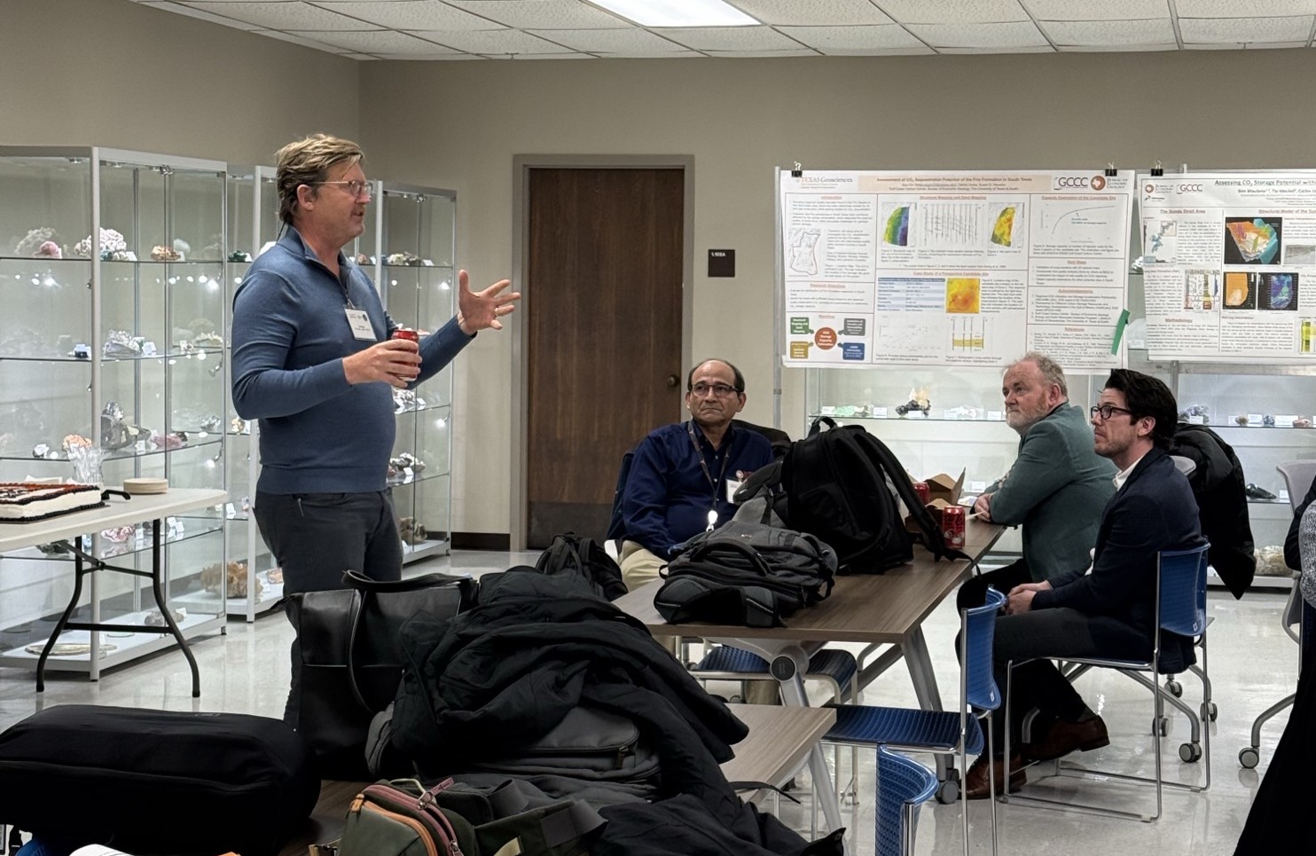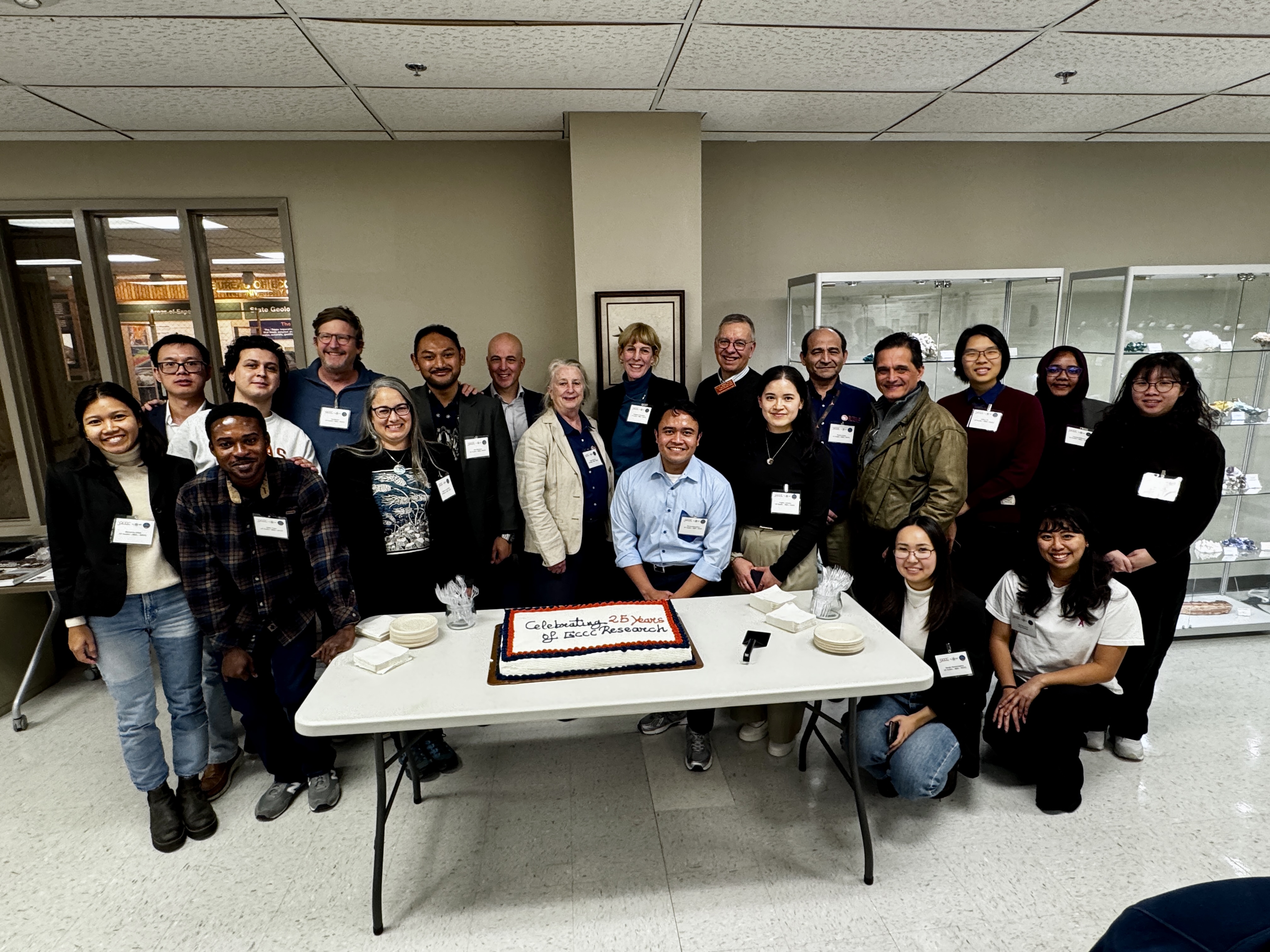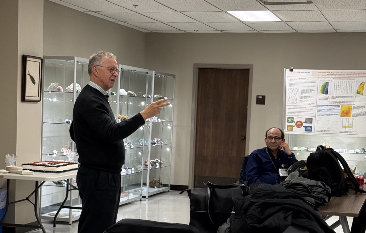 January 28, 2026: At UTCCS-8, the Gulf Coast Carbon Center (GCCC) was surprised by the Bureau of Economic Geology’s directorate with a celebratory cake for conducting carbon storage research for over 25 years now! Special thanks to the Bureau’s Director Lorena Moscardelli for sending the cake along with Jay Kipper to congratulate the GCCC Team during a UTCCS-8 luncheon. Tip Meckel, Katherine Romanak, and Ramón Treviño also roasted, we mean, toasted Sue Hovorka and the great advances she has made to carbon storage. She Hovorka started investigating CO₂ subsurface injections long before this technology was on anyone’s radar. Congratulations to Sue, and the GCCC Team through the years, for their great advancements that continue to have global impacts. Read more about this Bureau’s celebration of the GCCC here.