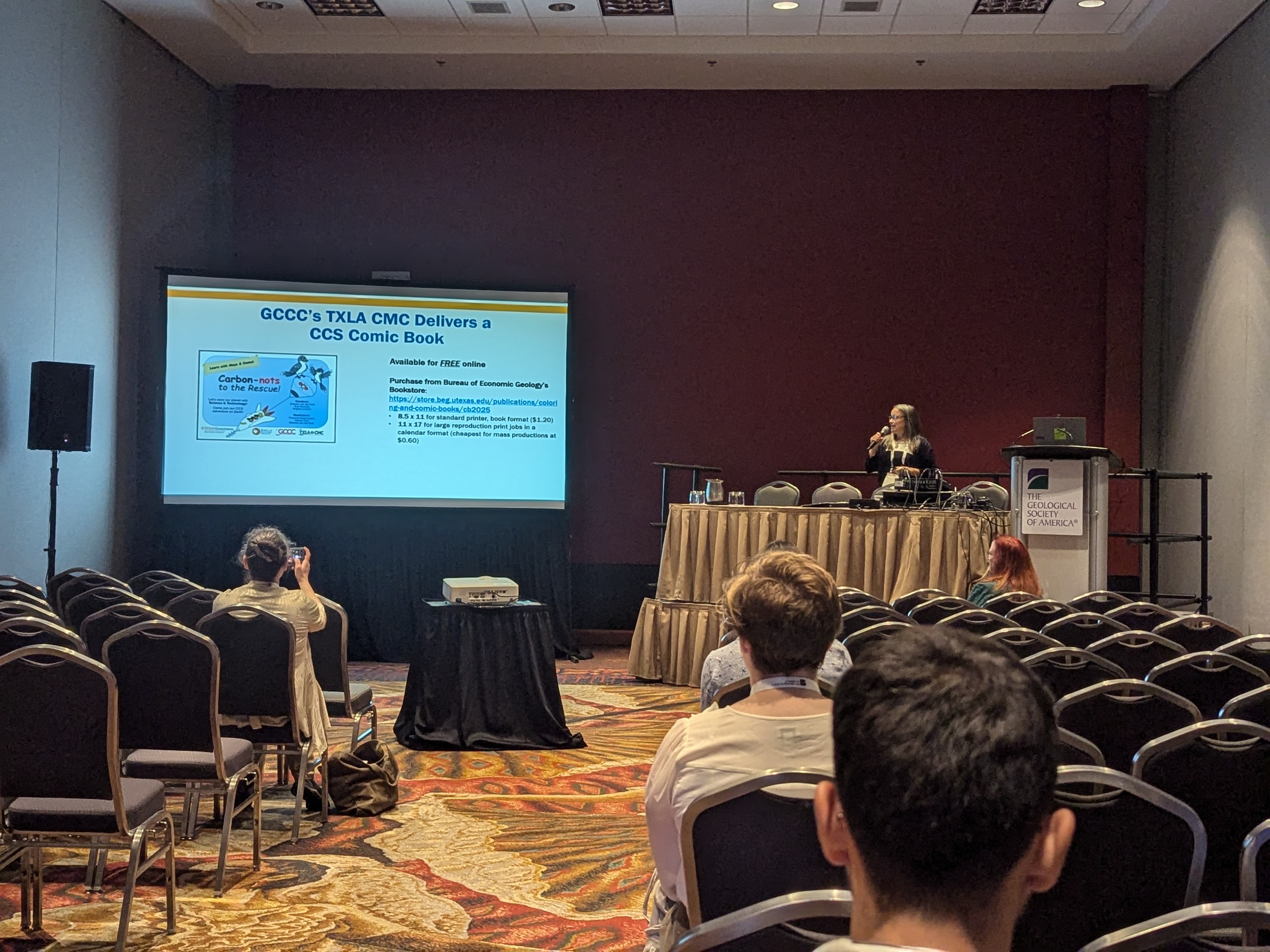 On Sunday, October 19, Dolores van der Kolk presented, "A Carbon Capture & Storage (CCS) Comic Book Created to Sustain Texas STEM and Public Acceptance: Carbon-nots to the Rescue!" Special thanks to illustrators & co-authors: Francine Mastrangelo, Sue Hovorka, Valerie Tran, and Angela Luciano.